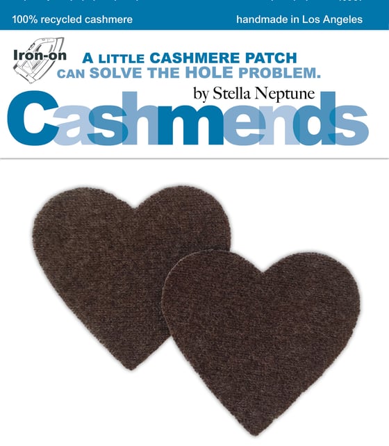 Iron-On Cashmere Elbow Patches - Dark Heather Brown Hearts