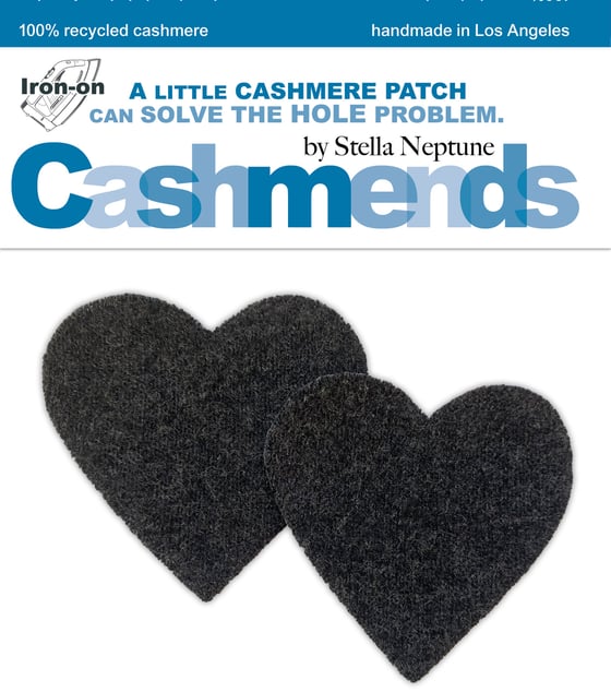 Iron-On Cashmere Elbow Patches - Charcoal Gray Hearts