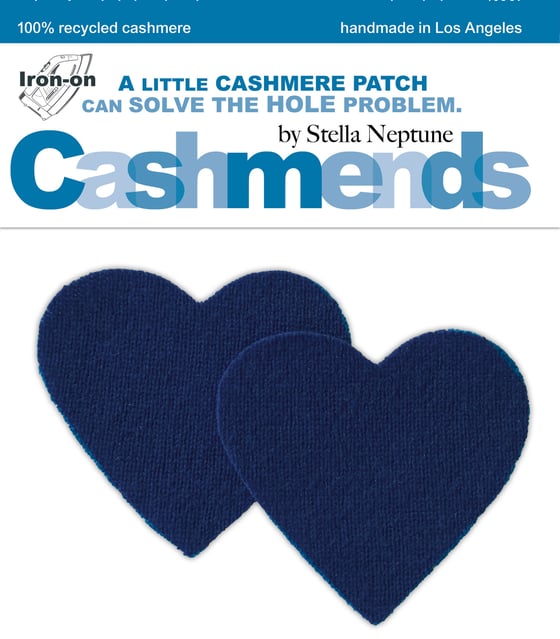 Iron-On Cashmere Elbow Patches - Navy Blue Hearts