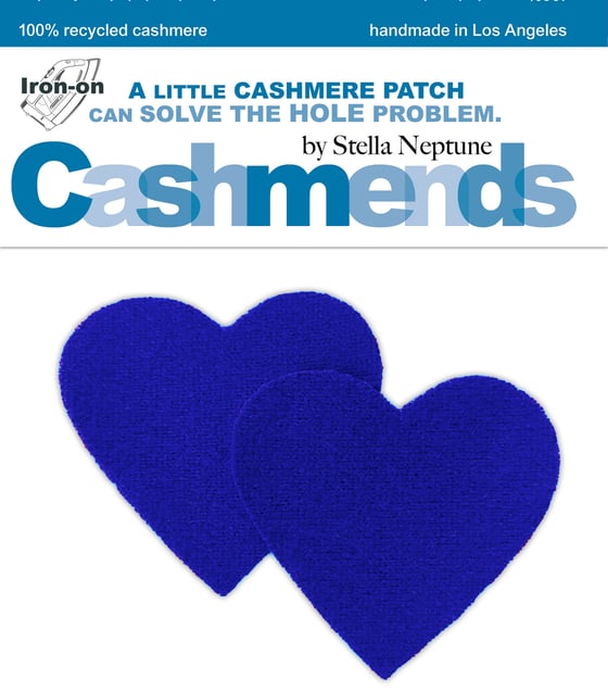 Iron-On Cashmere Elbow Patches - Electric Blue Hearts